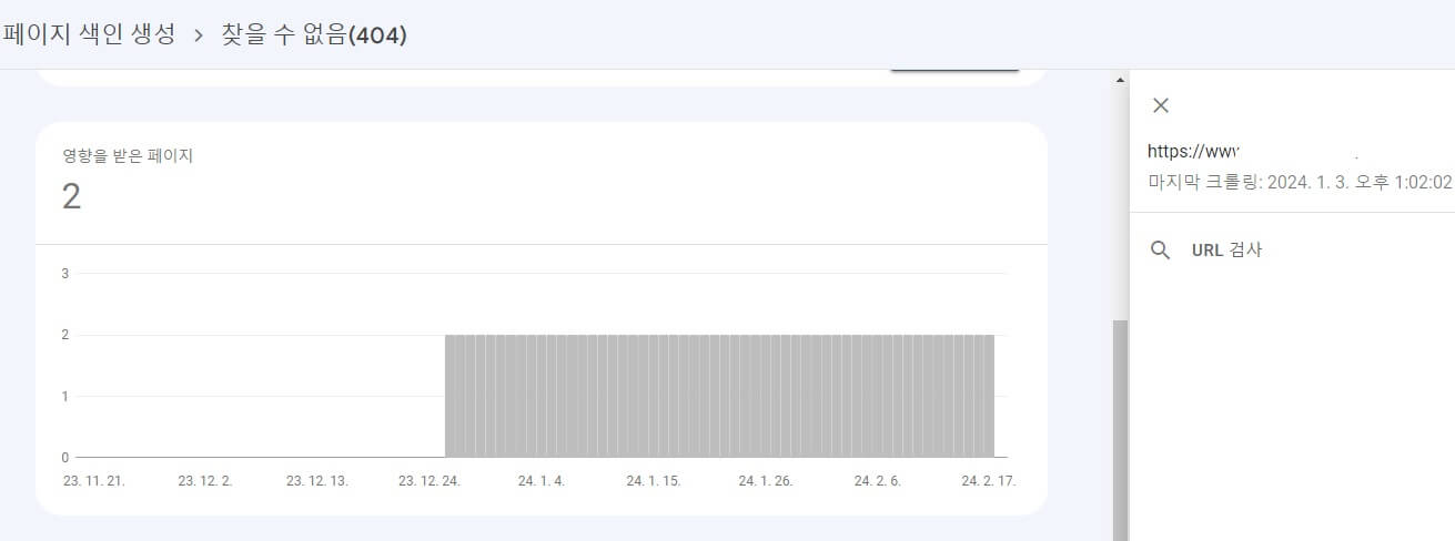 색인이 생성되지 않은 페이지를 클릭하면 다음과 같은 화면이 나옵니다.